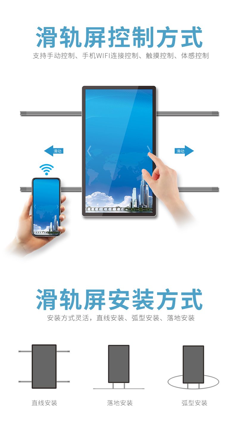手動自動移動滑軌屏